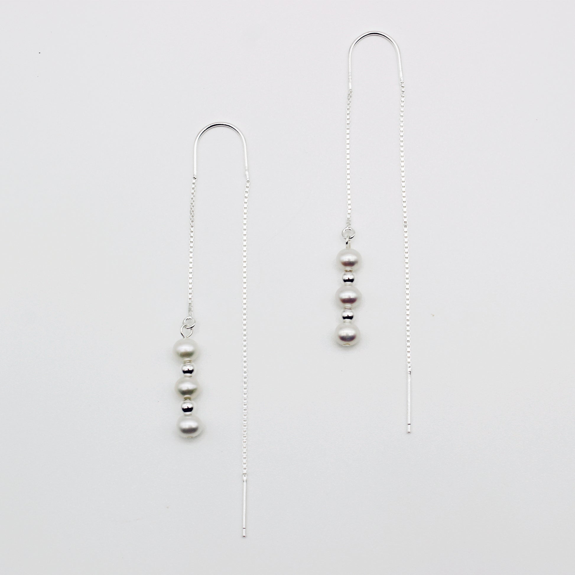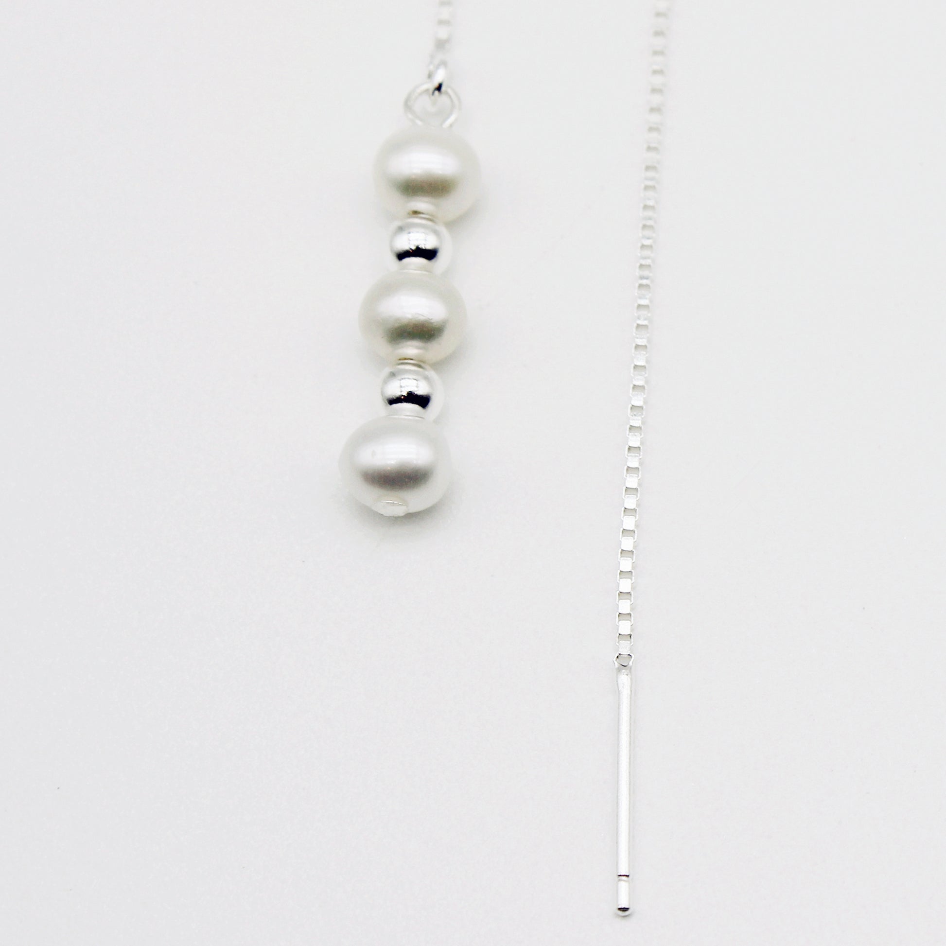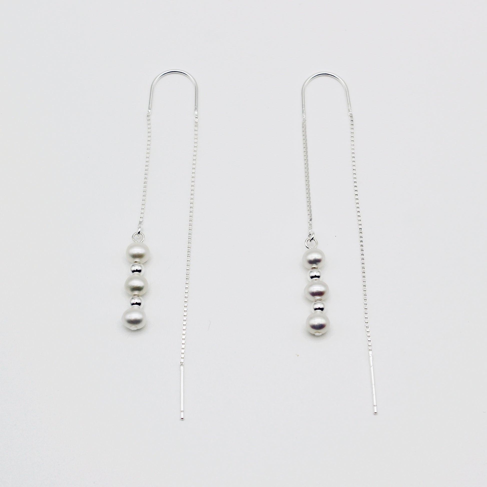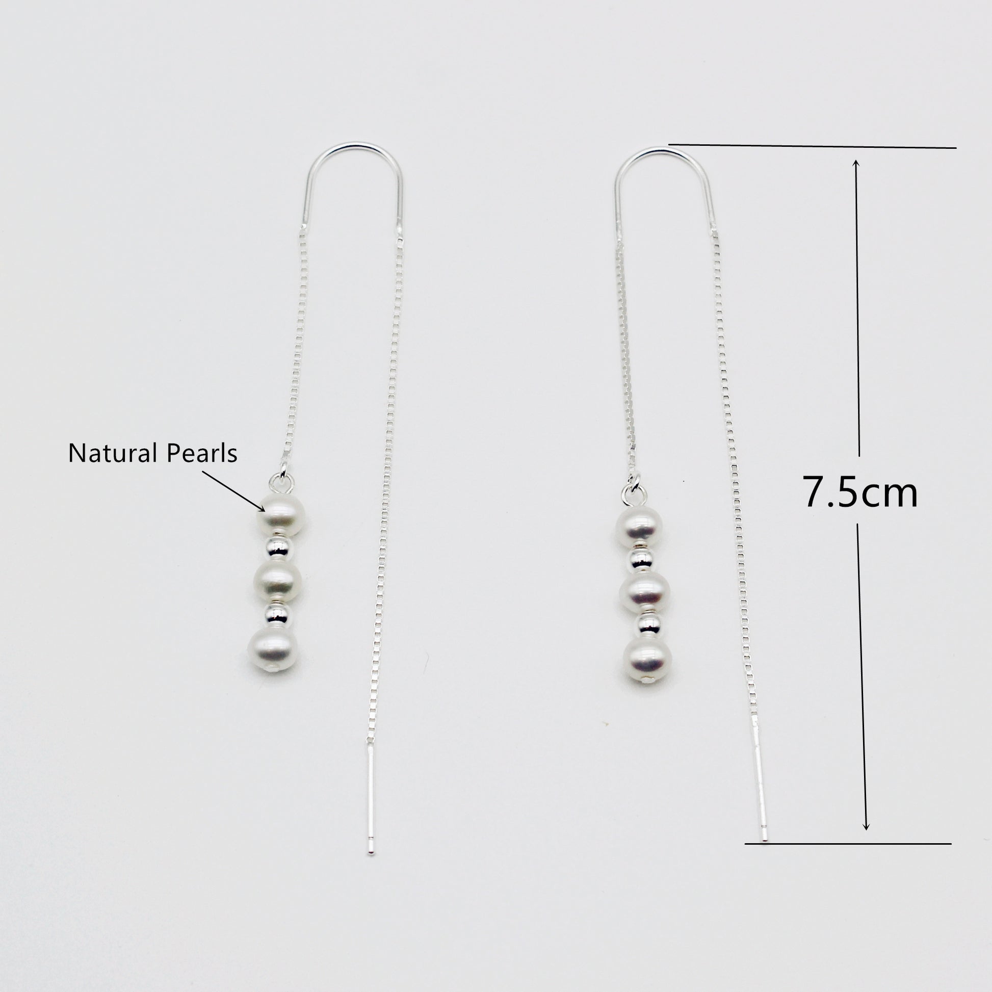 Elegant 925 Silver Natural Pearl Threader Earrings